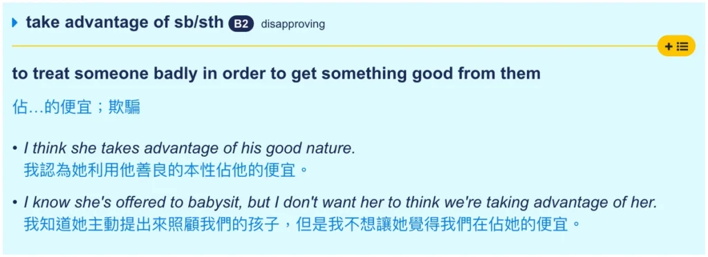 Source: https://blockid.pixnet.net/blog/post/25472876-%E8%8B%B1%E6%96%87%E7%89%87%E8%AA%9E%E7%B7%9A%E4%B8%8A%E5%AD%B8%EF%BC%9Atake-advantage-of-%28%E4%BD%94%E4%BE%BF%E5%AE%9C%29